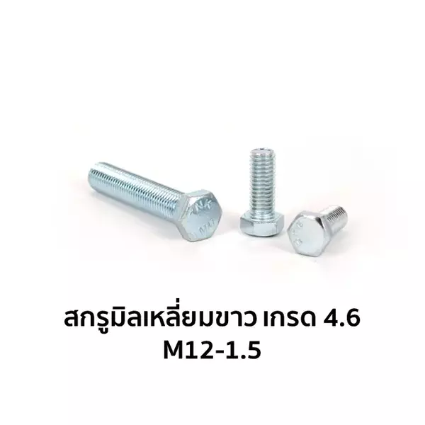 น็อตตัวผู้ หัวหกเหลี่ยม เกลียวมิล เกรด 4.6 M12-1.5 x 90 มม.