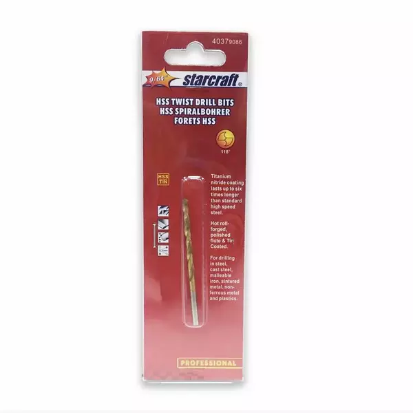 ดอกเจาะเหล็ก TITANIUM STARCRAFT HSS&TIN-COATED 9/64"