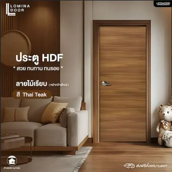 ประตู HDF รุ่น Lomina ลายไม้เรียบ สี Thai Teak