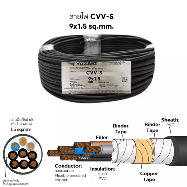 สายไฟ CVV-S 9x1.5 ตร.มม. YAZAKI