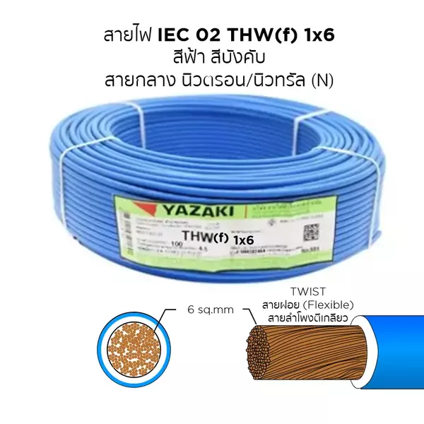 สายไฟ THW-F 1x6 ตร.มม. สีฟ้า YAZAKI