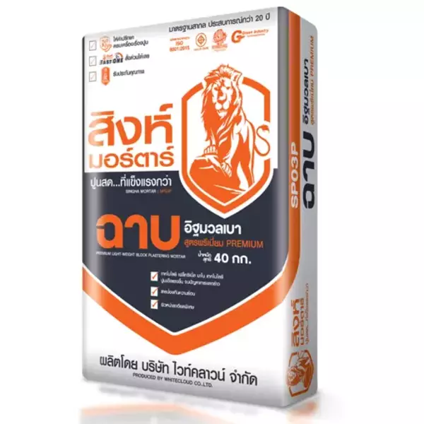 ปูนฉาบอิฐมวลเบาตราสิงห์ (พรีเมี่ยม) SP03P ขนาด 40 กก.