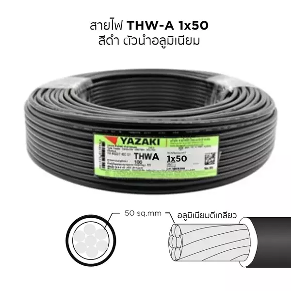 สายไฟ THW-A 1x50 ตร.มม. สีดำ YAZAKI