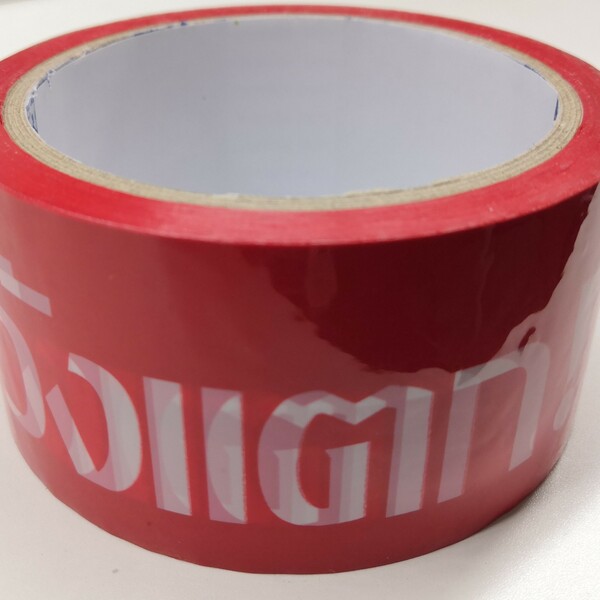 เทปOPP 2"X45Yระวังแตกแดงอักษรขาว Pack6