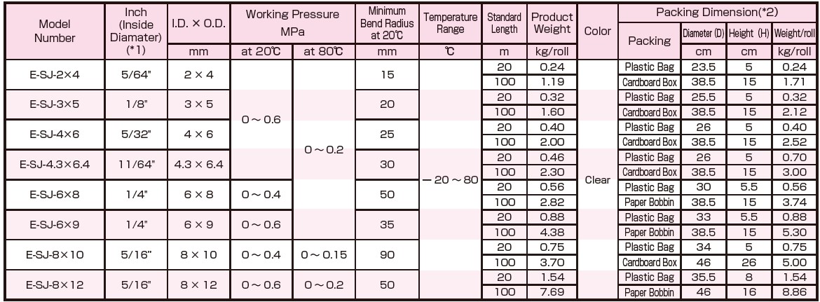 Hakko E-SJ ท่อลำเลียงและสายยางสำหรับใช้งานอเนกประสงค์ ใช้ลำเลียงอาหาร,หมึก,สารเคมี,น้ำมันและอื่นๆ มีความสามารถในการยืดหยุ่น แข็งแรงไม่แตกหักง่าย ป้องกันรอยขีดข่วนภายใน โปร่งแสง รองรับมาตรฐานด้านงานอาหาร และรองรับน้ำมัน เหมาะกับอุณหภูมิไม่เกิน 80°C