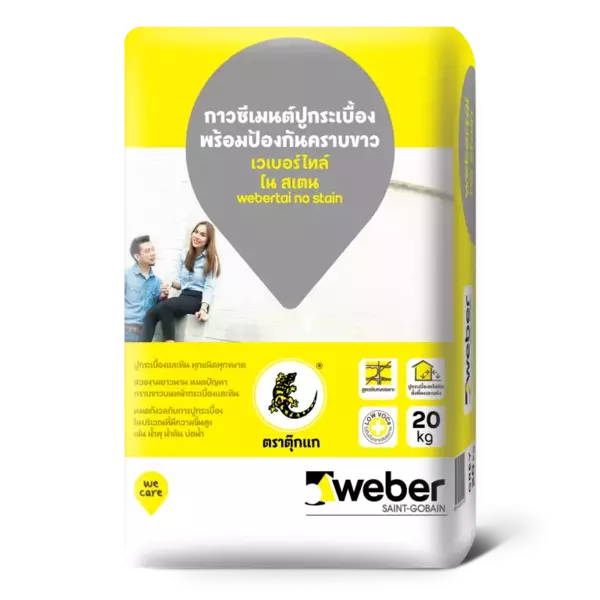 เวเบอร์.ไทล์ โน สเตน ตราตุ๊กแก คุณสมบัติเด่น เวเบอร์.ไทล์ โน สเตน ปูนตราตุ๊กแก ป้องกันคราบขาว คราบเกลือ บนกระเบื้อง ปูกระเบื้องขนาดใหญ่ กระเบื้องแกรนิตโต้ หินแกรนิต หินอ่อน เหมาะกับบริเวณที่มีความชื้นสูง ...