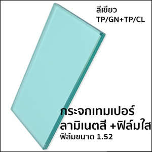 กระจกเทมเปอร์ลามิเนต เขียว+ใส เทมเปอร์ ฟิล์มใส (ฟิล์มหนา 1.52 มม.)