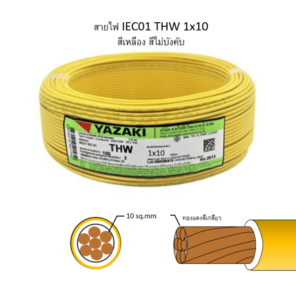 สายไฟ THW 10 ตร.มม. สีเหลือง YAZAKI