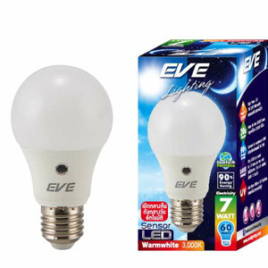 หลอดไฟ LED E27 7 วัตต์ วอร์มไวท์ ทรงลูกแพร์ EVE A60 SENSOR