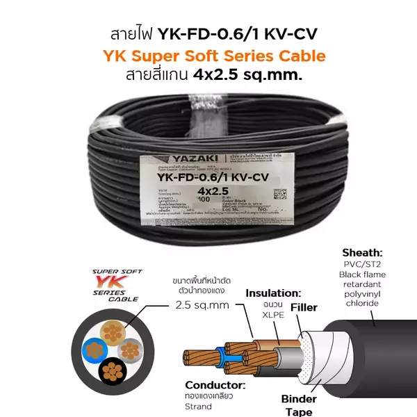 สายไฟ YK FD-CV 4x2.5 ตร.มม. YAZAKI 0.6/1 kV