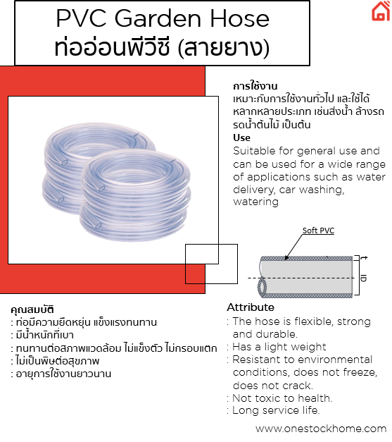สายยาง PVC 1/2 นิ้ว (4 หุน)ท่อน้ำไทย ท่ออ่อน PVC