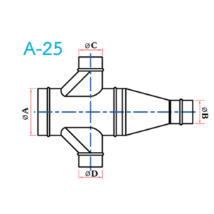 อุปกรณ์ท่อลม A-25 4ทาง+ลด ฐานเอียง 1 ด้าน