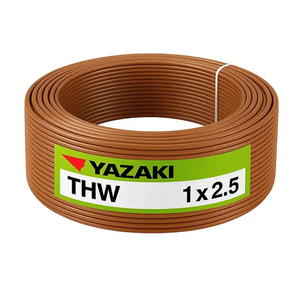 สายไฟ THW 2.5 ตร.มม. สีน้ำตาล จากแบรนด์ Yazaki (ยาซากิ) เป็นสายไฟฟ้าชนิดตัวนำทองแดง หุ้มด้วยฉนวน PVC ชนิดแกนเดี่ยว เหมาะสำหรับการใช้งานในระบบไฟฟ้าทั่วไปทั้งภายในและภายนอกอาคาร โดยเฉพาะงานเดินสายไฟที่ต้องการความยืดหยุ่นและการติดตั้งในพื้นที่จำกัด สายไฟ THW ขนาด 2.5 ตารางมิลลิเมตร สีน้ำตาลนี้ได้รับการออกแบบมาเพื่อรองรับแรงดันไฟฟ้าพิกัด 450/750 โวลต์ และมีคุณสมบัติทนทานต่ออุณหภูมิสูงสุด 70 องศาเซลเซียส ซึ่งเป็นไปตามมาตรฐานอุตสาหกรรมของประเทศไทย.