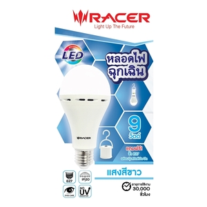 หลอดไฟ LED E27 9 วัตต์ เดย์ไลท์ ทรงลูกแพร์ RACER EMERGENCY HOLDER