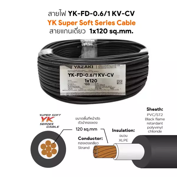 สายไฟ YK FD-CV 1x120 ตร.มม. YAZAKI 0.6/1 kV