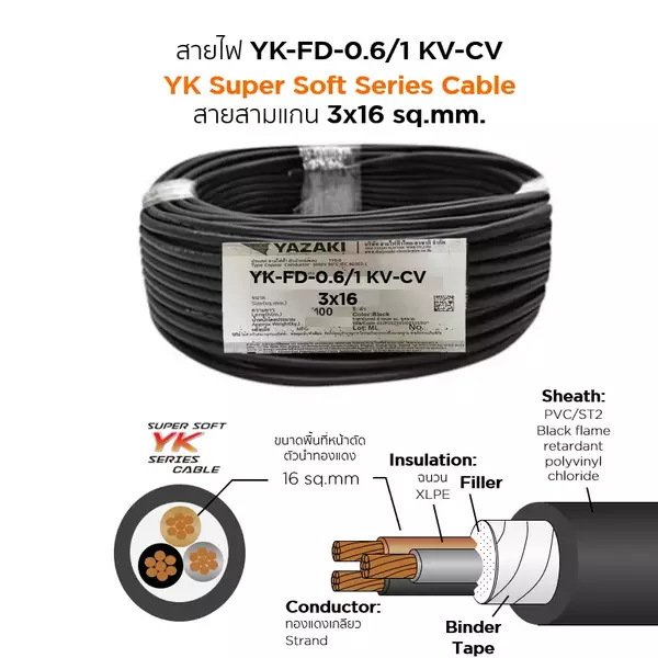 สายไฟ YK FD-CV 3x16 ตร.มม. YAZAKI 0.6/1 kV