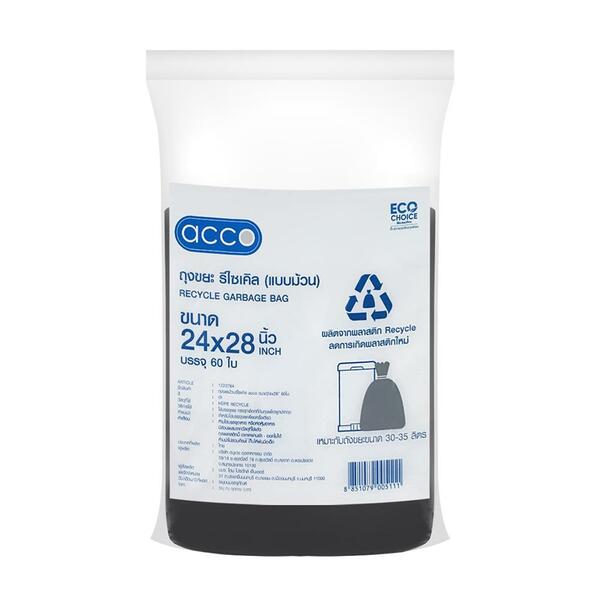 ถุงขยะม้วนรีไซเคิลแบบบาง ACCO 24X28 นิ้ว 60 ใบ สีดำ