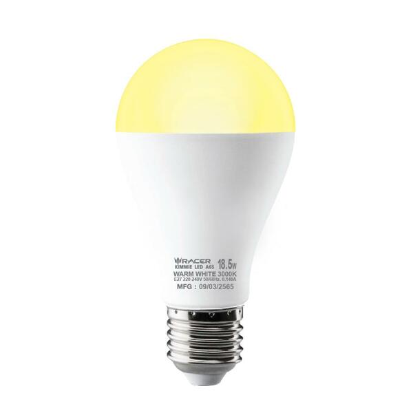 หลอดไฟ LED E27 18 วัตต์ วอร์มไวท์ ทรงลูกแพร์ RACER A65 KIMMIE
