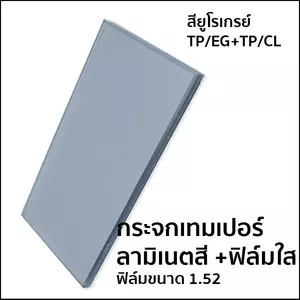 กระจกเทมเปอร์ลามิเนต เทา+ใส เทมเปอร์ ฟิล์มใส (ฟิล์มหนา 1.52 มม.)