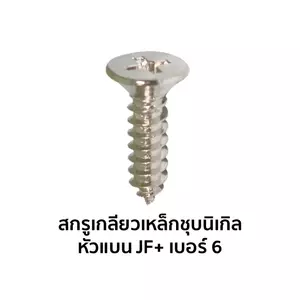 สกรูเกลียวเหล็กชุบนิเกิล หัวแบน JF+ เบอร์ 6