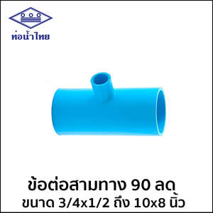 สามทาง 90 ลด ท่อน้ำไทย อุปกรณ์ข้อต่อท่อพีวีซีแข็งสำหรับใช้กับท่อรับความดัน ผลิตตามมาตรฐานผลิตภัณฑ์อุตสาหกรรม เลขที่ มอก.1131-2535 “มาตรฐานข้อต่อท่อพีวีซีแข็ง สำหรับใช้กับท่อรับความดัน”  เหมาะนำไปใช้งานท่อสำหรับบ่อบาดาล...