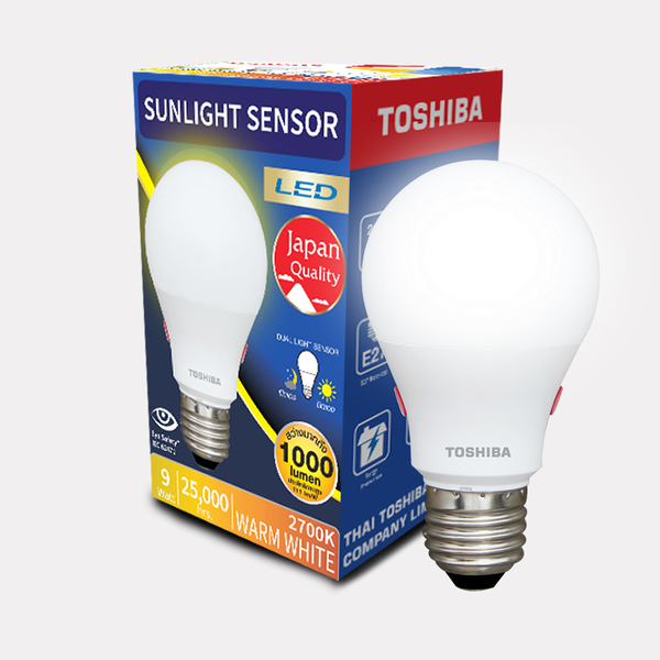 หลอดไฟ LED E27 9 วัตต์ วอร์มไวท์ ทรงลูกแพร์ TOSHIBA SUNLIGHT SENSOR