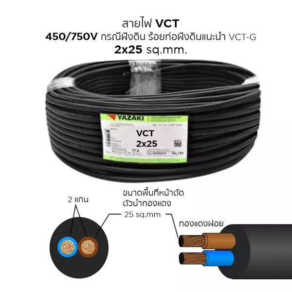 สายไฟ VCT 2x25 ตร.มม. YAZAKI