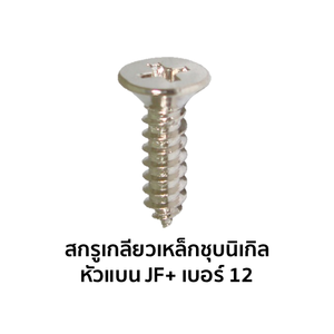 สกรูเกลียวเหล็กชุบนิเกิล หัวแบน JF+ เบอร์ 12