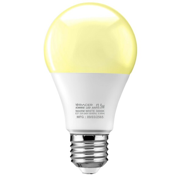 หลอดไฟ LED E27 13 วัตต์ วอร์มไวท์ ทรงลูกแพร์ RACER A60 KIMMIE