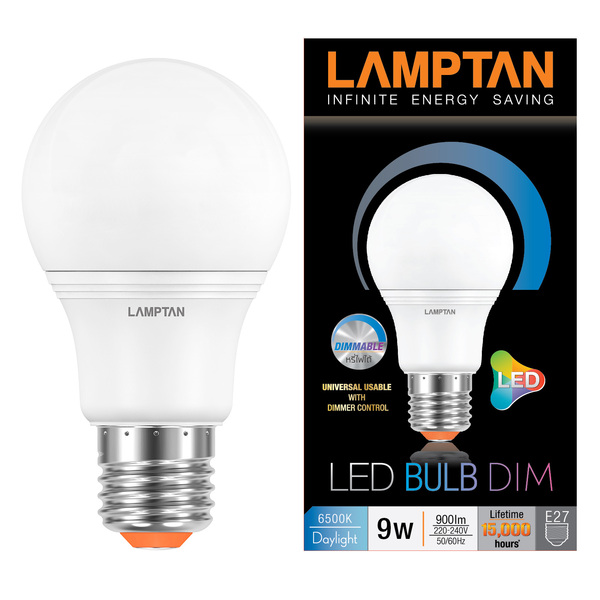 หลอดไฟ LED E27 9 วัตต์ เดย์ไลท์ ทรงลูกแพร์ LAMPTAN BULB DIM