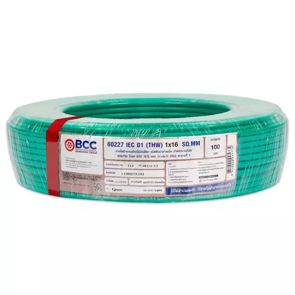 สายไฟ THW 16 ตร.มม. สีเขียว BCC