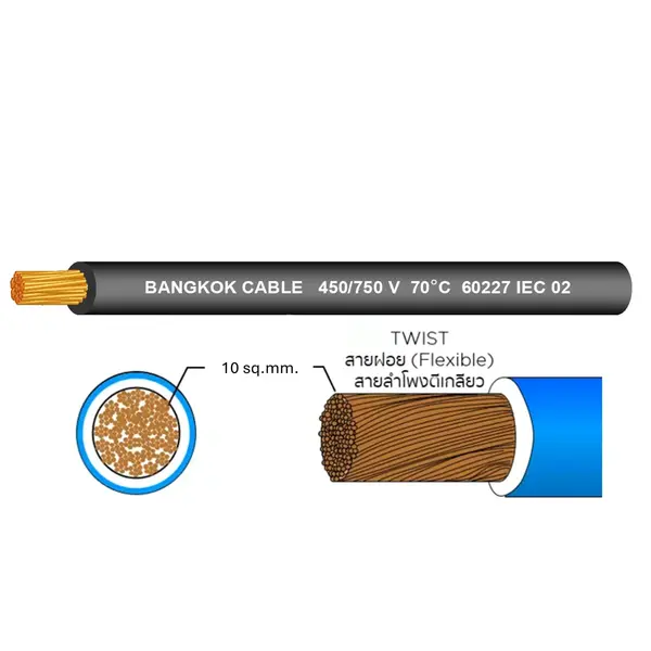 สายไฟ THW-F 1x10 ตร.มม. สีน้ำเงิน BCC