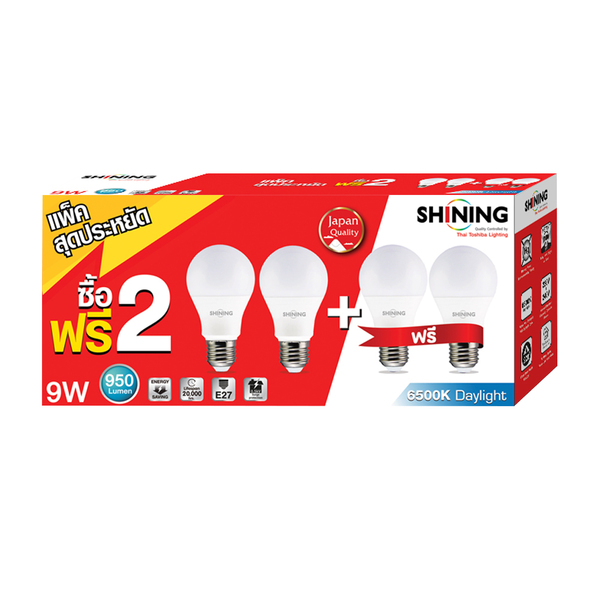 หลอดไฟ LED E27 9 วัตต์ เดย์ไลท์ ทรงลูกแพร์ SHINING A60