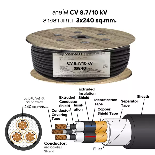 สายไฟ CV 3x240 ตร.มม. YAZAKI 12/20 kV