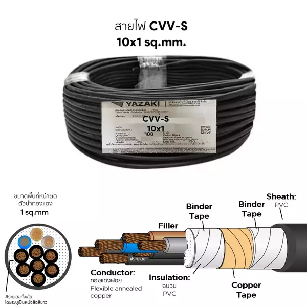 สายไฟ CVV-S 10x1 ตร.มม. YAZAKI