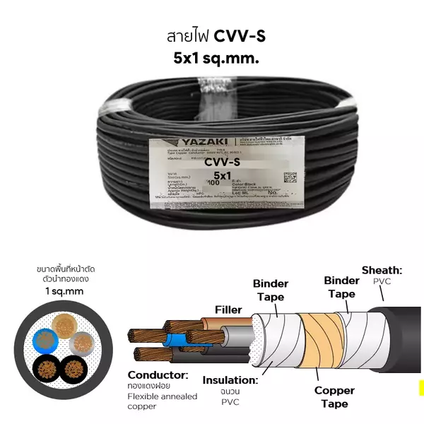 สายไฟ CVV-S 5x1 ตร.มม. YAZAKI
