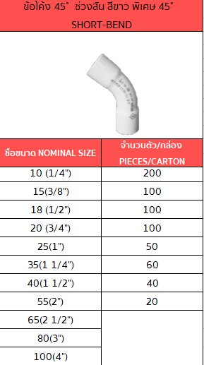 ข้อโค้ง 45˚ ช่วงสั้น สีขาว พิเศษ