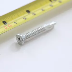 ปลายสกรูมีปีก ช่วยคว้านเนื้อทำไห้ไม้ฝาไม่ดึงขึ้นมาตามเกลียวสกรู ใช้ยึดกับโครงเหล็กที่มีความหนา 1.5-3 มม.