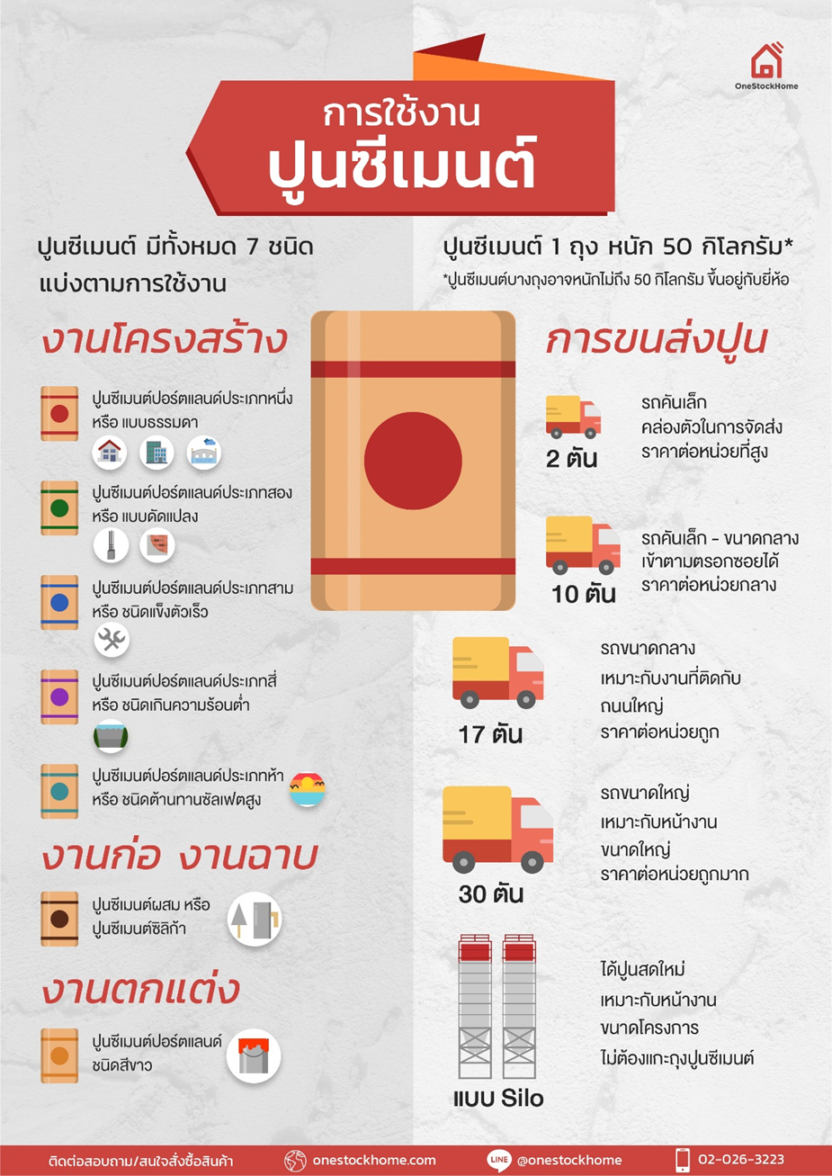 - บรรจุถุง ชั้นถุงพลาสติก ป้องกันความชื้น และทนต่อแรงกระแทก ทำให้รักษาคุณภาพปูนให้สดใหม่เสมอ
