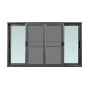 หน้าต่างบานเลื่อนอลูมิเนียม พร้อมมุ้งลวด F-S-S-F สีเทา