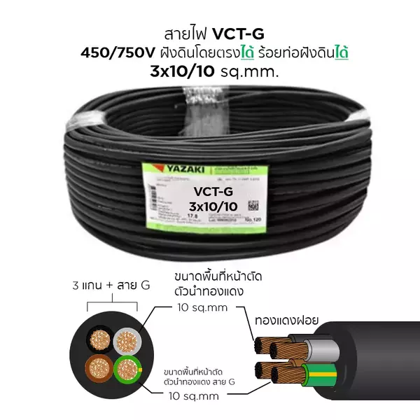 สายไฟ VCT-G 3x10/10 ตร.มม. YAZAKI