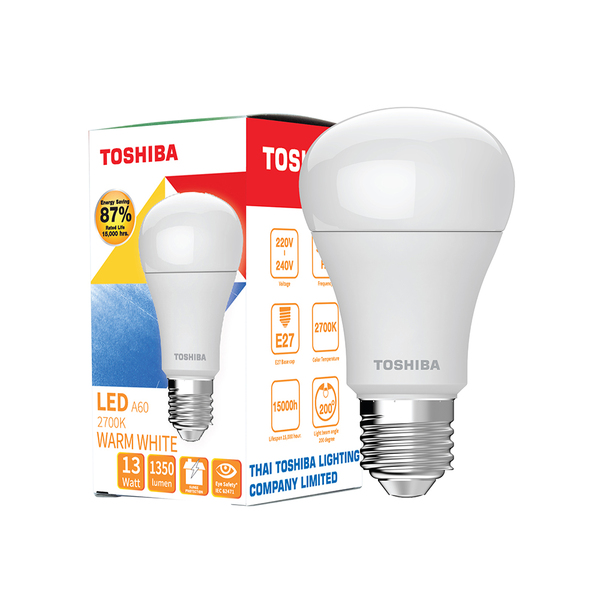 หลอดไฟ LED E27 13 วัตต์ วอร์มไวท์ ทรงลูกแพร์ TOSHIBA A60 G7