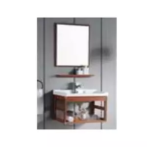 MODA 03033943 ตู้พร้อมอ่างล้างหน้าและตู้กระจกติดผนัง ลายไม้