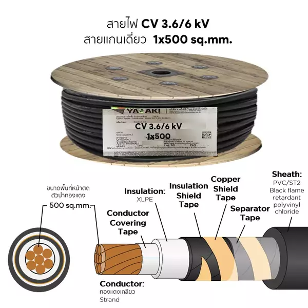 สายไฟ CV 1x500 ตร.มม. YAZAKI 3.6/6 kV
