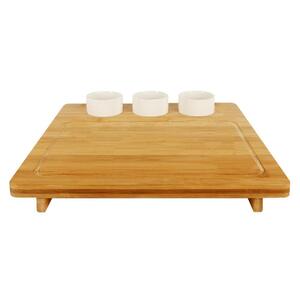 ถาดไม้ไผ่+ที่ใส่เครื่องเคียงเซรามิค 3ช่อง