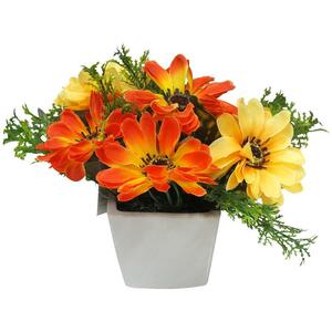 กระถางบานชื่น ฟ้าและดอกไม้ สีส้ม