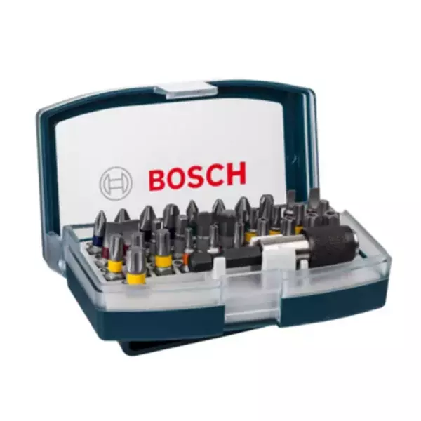 ชุดไขควง 32 ชิ้น BOSCH ในชุดประกอบด้วย ดอกไขควง ยาว 25มม. 32 ชิ้น ดอกไขควงแฉก+PH : PH1 / PH2 (2ชิ้น) / PH3 ดอกไขควงแฉก+PZ : PZ1 / PZ2 (2ชิ้น) / PZ3 ดอกไขควงแบน - S : กว้าง 3มม. , 4มม , 5มม , 6มม. ดอกแกนหกหกเหลี่ยม HEX : 3มม. ,...