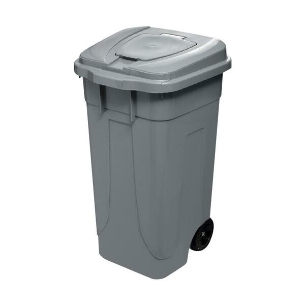 ถังขยะเหลี่ยม ฝาเปิด-ปิด มีล้อ เรืองวา 100L สีเทา