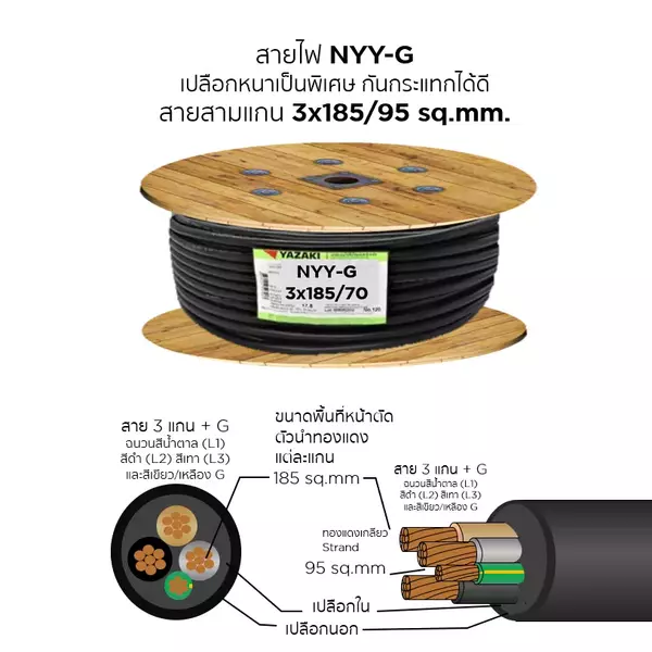สายไฟ NYY-G 3x185/95 ตร.มม. YAZAKI