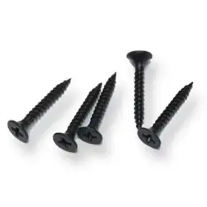 - สกรูยิงแผ่นยิปซั่ม: ใช้สำหรับยึดแผ่นยิปซั่มบอร์ดเข้ากับโครงคร่าวเหล็กหรือไม้ มีขนาดความยาวให้เลือกหลากหลายเพื่อให้เหมาะสมกับความหนาของแผ่นยิปซั่มและประเภทของโครงคร่าว เช่น ขนาด 25 มม. (1 นิ้ว), 38 มม. (1.5 นิ้ว) และ 50 มม. (2 นิ้ว) ปลายสกรูมักจะเป็นแบบปลายแหลมคมเพื่อเจาะทะลุแผ่นยิปซั่มและโครงคร่าวได้อย่างง่ายดาย
